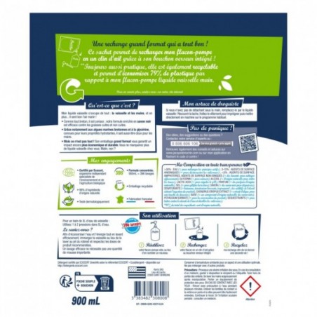 Détergent certifié ECOCERT Greenlife selon le référentiel ECOCERT "Ecodétergent" disponible sur http://detergents.ecocert.com
