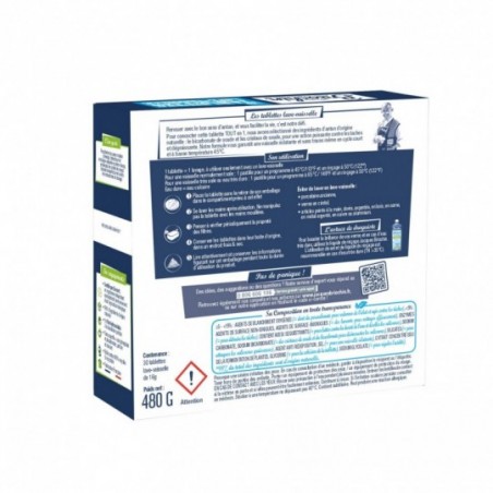 Pour concocter cette tablette TOUT en 1, nous avons sélectionné des ingrédients d'atan d'origine naturelle : le bicarbonate de soude et les cristaux de soude, pour une action puissante contre les taches et dégraissante.