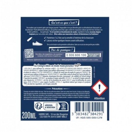 👟 Pulvérisez 1 à 2 fois à l’intérieur de la chaussure, directement sur la semelle. ⏳ Laissez agir et sécher pendant quelques heures avant de porter vos chaussures.
