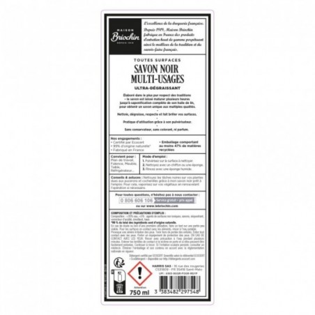 - Écologique : le savon noir multi-usage est certifié Ecocert Greenlife. C’est-à -dire que sa formulation est d’origine naturelle ou biologique. Ceci s’explique par l’huile de lin, présente dans notre gamme de produits Le Briochin.