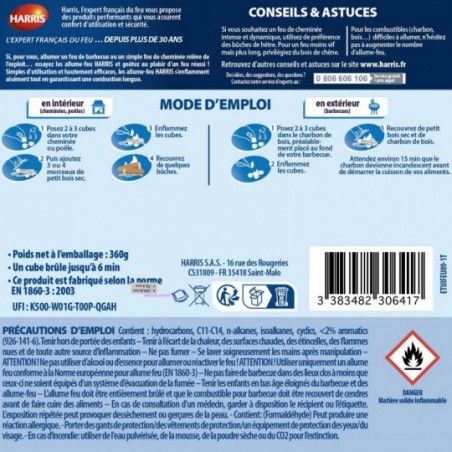 Les cubes sans odeur HARRIS ne dégagent pas de d'odeur désagréable à l’allumage. Ils sont efficaces et rapides.