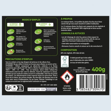 Si pour vous, allumer un feu de barbecue ou un simple feu de cheminée relève de l’exploit, essayez les allume-feu Harris et goûtez au plaisir d’un feu réussi !