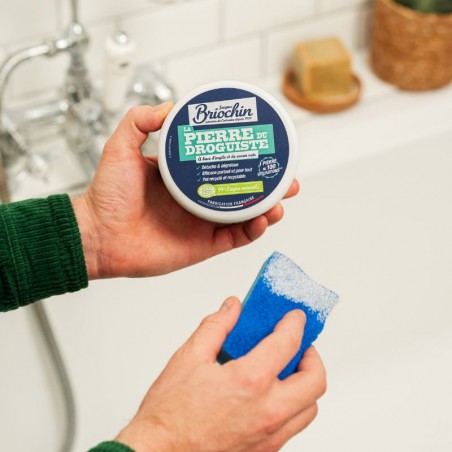 En raison des difficultés actuelles d’approvisionnements, la taille de l’éponge de la pierre du droguiste peut être amenée à légèrement évoluer, sans impact sur l’efficacité des produits.